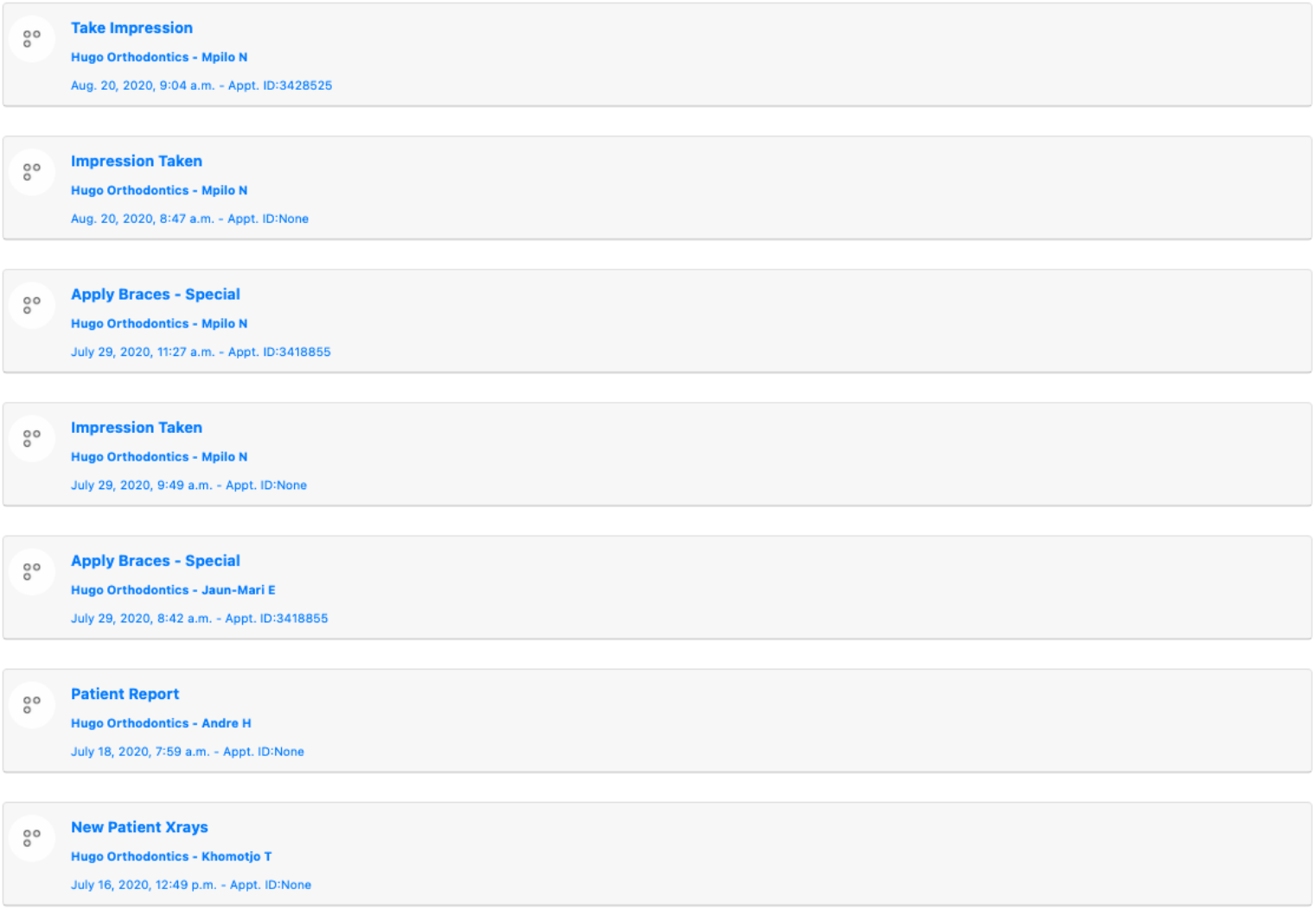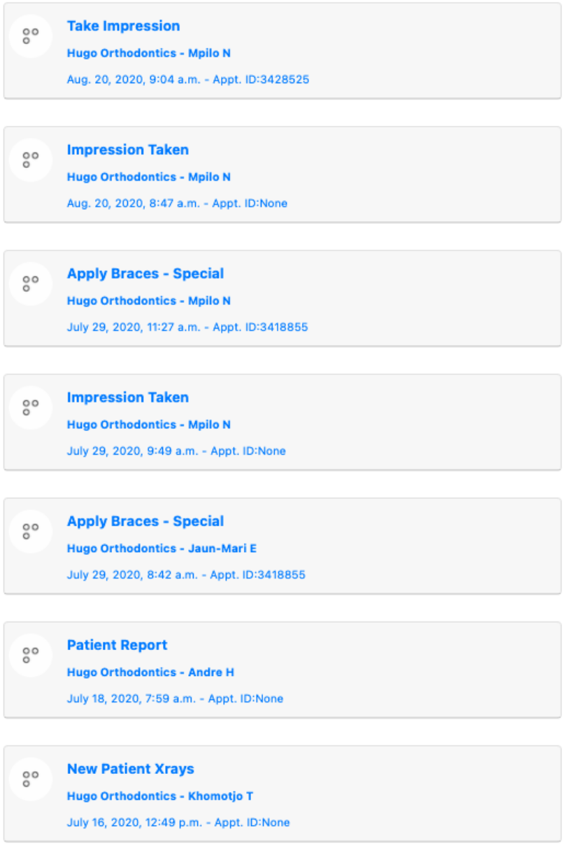 Our interactive timeline provides a holistic view of each patient's treatment setup, consent, photographs, X-rays, treatment plan and progress. With Hugo Systems, patient management is a cinch.
