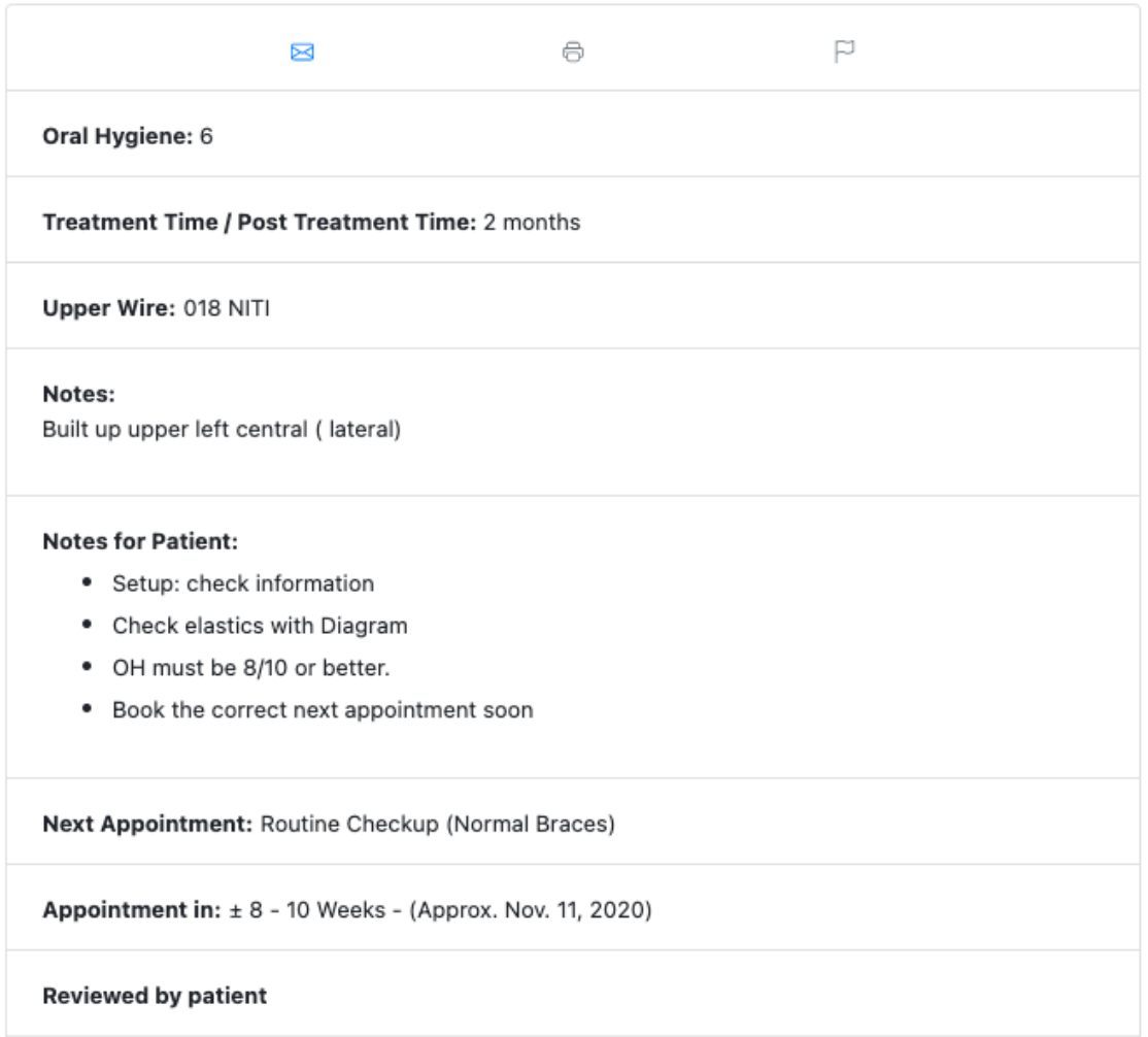 Draw your prescription directly onto customisable templates to communicate your decisions with patients seamlessly. These drawings will be attached to the treatment email you send to your patient after each visit and available on the patient portal. Keep your patients in the loop and help patients to improve compliance during treatment.